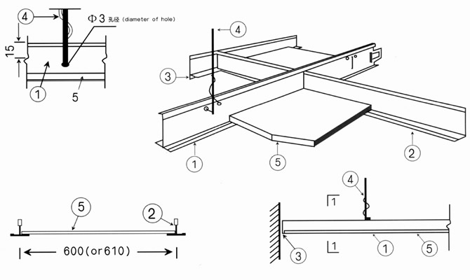 Unit :mm 1.T main keel 2.T false keel 3.L border keel 4.Suspender pole 5.Vogue ceiling