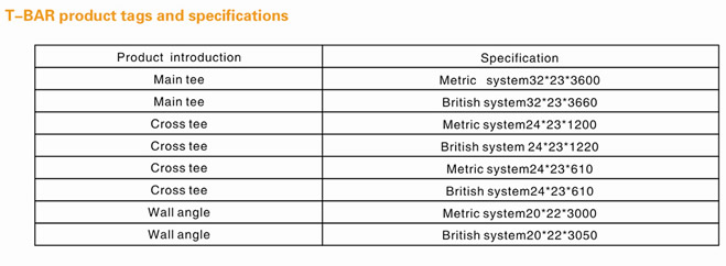 T-BAR from galvanized steel sheet and color coated steel roll-forming.T-BAR can be processed into the ceiling based on a variety of different size specifications. A handsome,high-strength,anticorrosion,water features,higher quality alternative to T-aluminum keel.T-BAR divided into teo series,incluing Metric,teo British specifications.